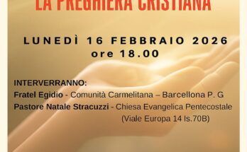 Lunedì 16 febbraio 2026 ore 18:00 BIBLIOTECA SOCIALE “STEFANO D’ARRIGO” POLO HUB DI COMUNITA’ MAREGROSSO MESSINA GRUPPO “ PREGHIERA E SERVIZIO PER L’UNITA’ DEI CRISTIANI“ LA PREGHIERA CRISTIANA INTERVERRANNO : Fratel …