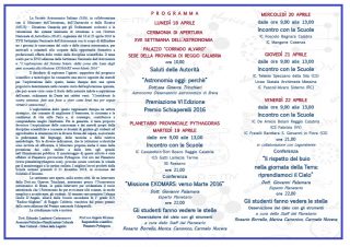 Lunedì 18 aprile ore 10,00 Palazzo“CORRADO ALVARO” – (Piazza Italia – RC) CERIMONIA DI APERTURA XVII SETTIMANA NAZIONALE DELL’ASTRONOMIA – Saluti delle Autorità